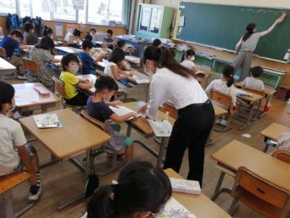 昨日から、宮野小学校で、教職を目指してがんばっている学生さんが勉強しています。さっそくいろんな教室で、子供たちと学習したり活動したりしています。子供たちは「お姉ちゃん先生」の来校に大喜びです。