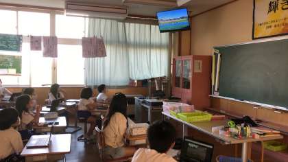 ハードル走をする前に、教室で上手に走るポイントの確認をしました。