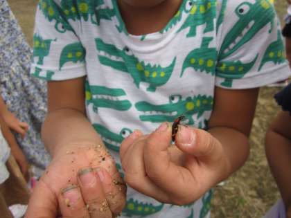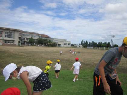 生活科の学習で虫探しに出かけました。イナゴやトンボを見つけたり、夏にたくさん鳴いていた蝉の抜け殻を見つけたりしました。友達と一緒に、よーく観察したり、たくさん捕まえたり・・・楽しそうに虫探しをしていました。