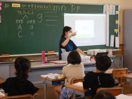 文字の形をとらえて、おそらでも書いてみます。一つ一つ丁寧に覚えていきます。