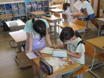 1学期にうまくできなかったことを振り返り、自分たちができることを進んで行っています。学習プリントやクイズプリントを作って配ったり、怖い話やイントロクイズなど出し物をしたりするなど、より楽しいクラスにしようと係活動が活発になってきています。