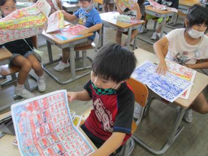 昨日の社会科の学習で、「チラシにもスーパーの工夫があると思う」と話している子がいあました。