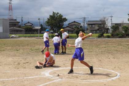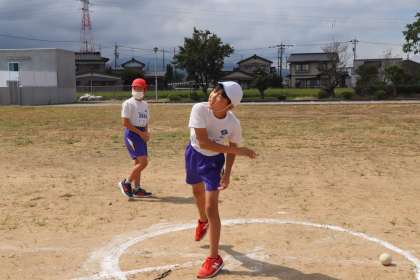 校内陸上記録会「ソフトボール投げ」の様子です。