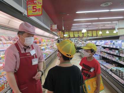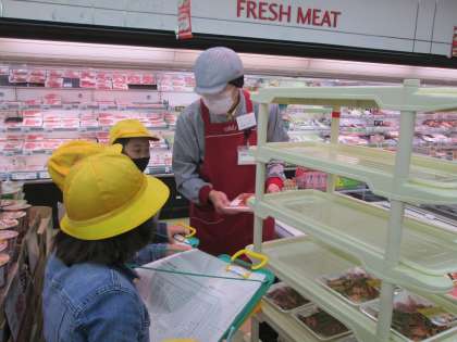 お店の方にインタビューもしながら、スーパーの工夫を見つけていました。