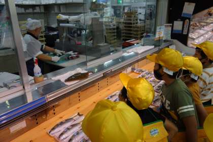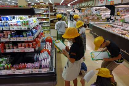 売り場には消費者のための工夫がたくさんありました。ワークシートにいっぱい気付いたことをメモする子供たちの姿がとても素敵でした。