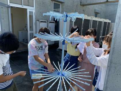 手洗いをした後は、干して乾かします。 どのように干すと速く乾くのか、考える子供たちです。