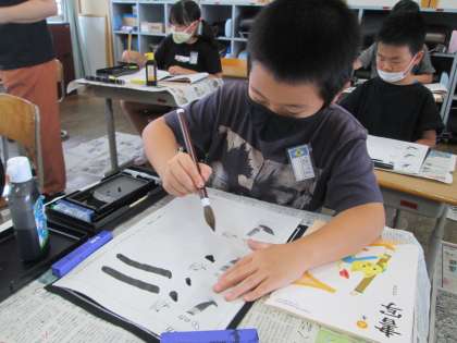 力の入れ方を変えながら直線を書いたり、はらいの練習をしました。
