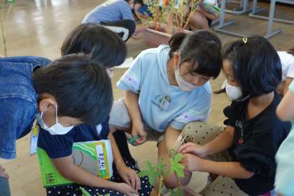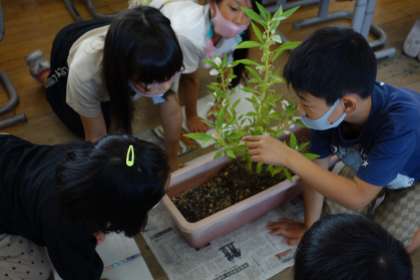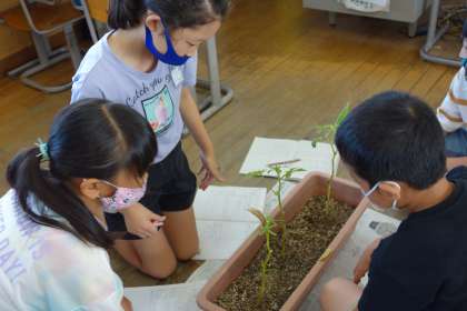 育ててきた植物の「実」を調べました。実の中には、種が入っていることが分かりました。