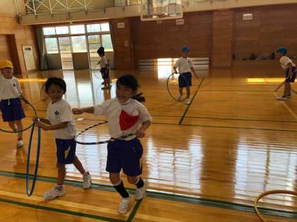 今日は、短縄跳び、フラフープ、マット運動をしました。来週から、学習発表会の練習が始まります。みんなで頑張りましょう!
