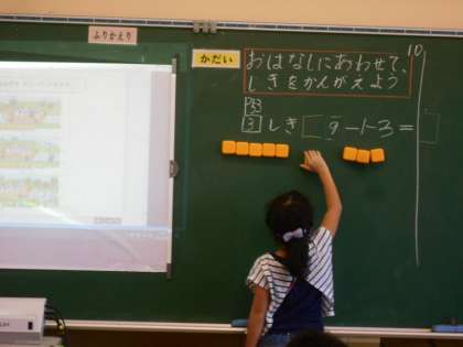3つの式の計算の仕方について考える学習をしています。子供たちが自分の頭の中でしている計算の仕方をクラスのみんなに説明することができるようになってきました。
