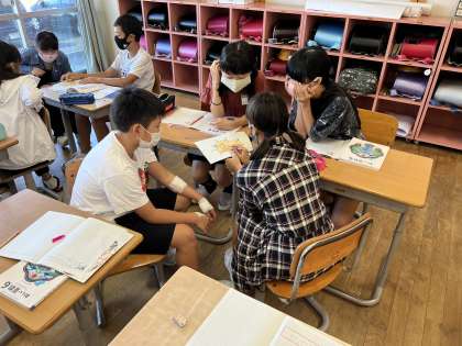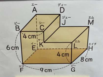 5年生では、切って2つの直方体に分けたり、一部分を付け足して直方体にしたりして、体積を求めましたが、今回は、底面積×高さの式を使って、切ったりするなどして、形を変えないで求めるという条件があります。明日、それぞれの考えを聴き合います。