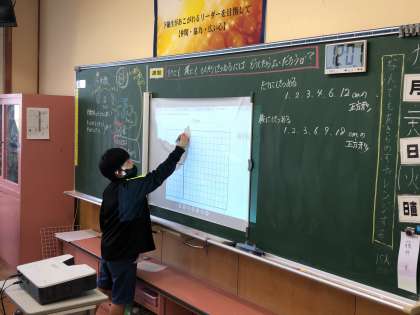 縦も横もぴったりしきつめることができる正方形の辺の長さについて考えました。