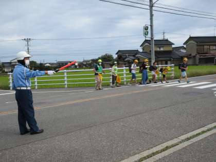 たくさんの交通指導ボランティアの方が、それぞれの場所で交通安全に気を配ってくださっています。パトカーも巡回しています。