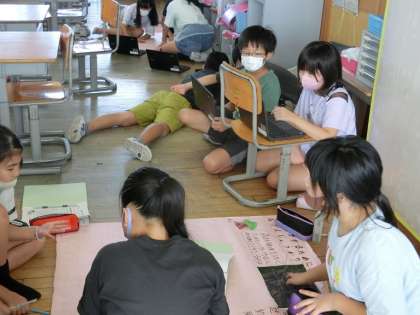 4年生は、総合的な学習の時間のグループ活動風景です。
