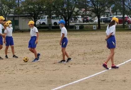 6年生は、体育で取り組んでいる「サッカー」の練習風景です。