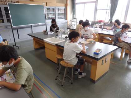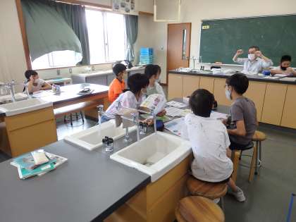 先生の説明を聞きながら、理科のテスト直しをしました。