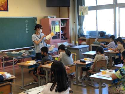 国語の教科書に秋を紹介するページがあります。今日は、自分が秋と感じるものを見つけたり、自分の好きな秋を紹介したりしました。