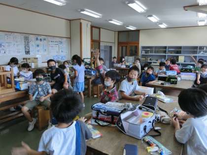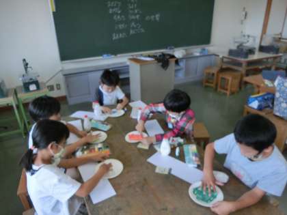 とろとろえのぐをつかってゆびや手でかくことをしました。「ゆびや手でかくといつもと違う感じがする」と大こうふんでした。ぬったところがふくらんでいるところが面白かったようです。