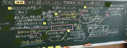 イタイイタイ病についてのこれまでの追究を振り返り、学習発表会で伝えたいことを学年で話し合いました。