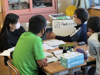 今日は、単純な円の面積を求めるのではなく、色の付いた部分の面積の求め方を考えました。