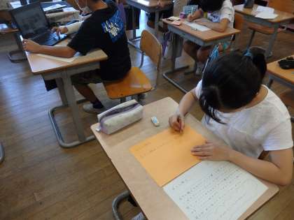 秋を感じる言葉や詩、俳句を考え、作品に表しました。 来週清書し、文化祭に提出します。