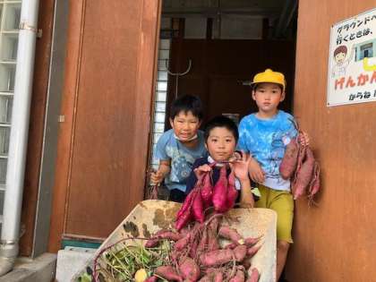 5月に苗を植えたサツマイモを今日掘りました。なかなか大きく育っていて、ずっしりとしたサツマイモに、子供たちからは、「重い!」と声が上がりました。学級で、クッキングに挑戦したいと考えています。
