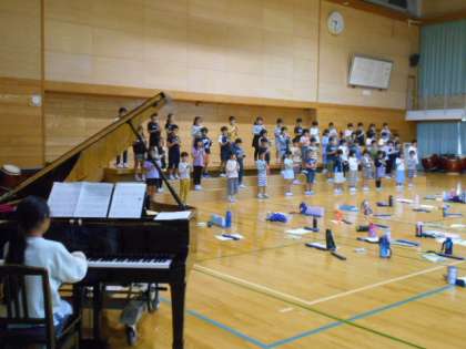 学習発表会に向けて体育館での練習が始まっています。3年生の子供たちは、今年から取り組んでいるリコーダーを上手に演奏しようと張り切っています。
