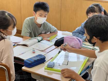 グループで様々な考え方を共有したり、行き詰まってしまった悩みを解決したりします。