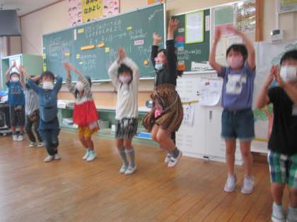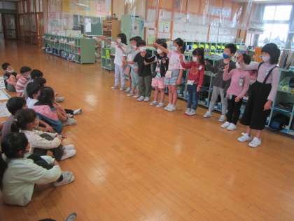学習発表会のチームに分かれて、お互いに見合ったり、もう一度考え直したりしながら練習をしていました。よりよいものにしたい!という気持ちが伝わってきます。