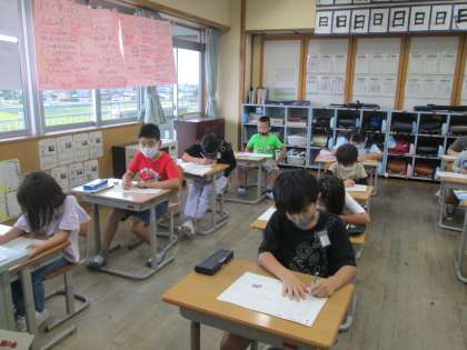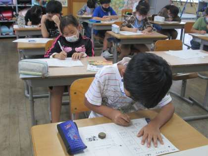 算数の学習の一単元が終わりました。最後にプリントで力だめしです。全部できたかな?