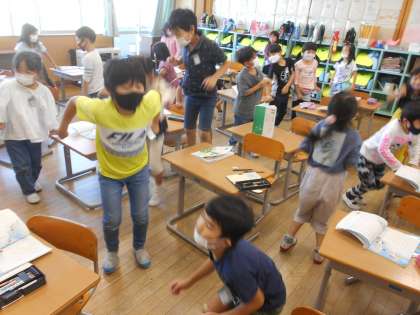 教科書の文章を読むと、30センチとんだとかいてあったので、みんなでとんでみました。ジャンプの高さを確認できました。