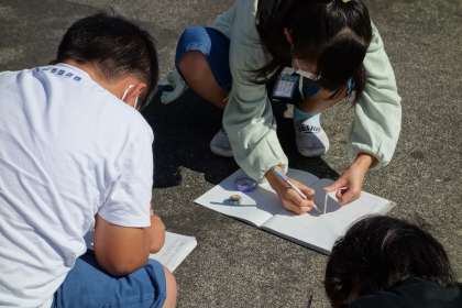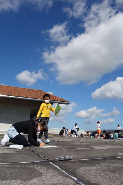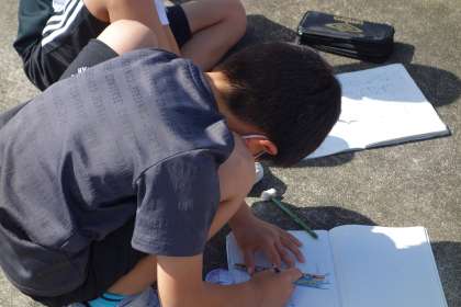 時間の変化に伴う、太陽の向きとかげの向きや長さの変化を観察しました。昼間から午後にかけて、かげがどんどん伸びている様子に興味をもっていました。子供たちは、「夕方にはかげがとても長くなる」と言っていました。さて、夕方のかげはどうなっているでしょうか??
