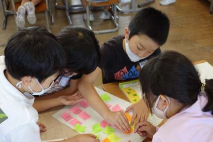 報告する文書を書くために、グループで内容を考えました。
