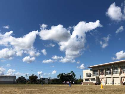 グラウンドでベースボール型のゲームに取り組みました。自分たちでルールを作り変えながら、一人一人が輝くゲームにしていきます。