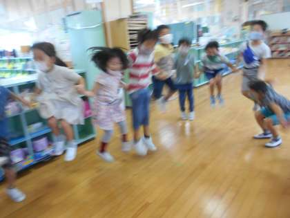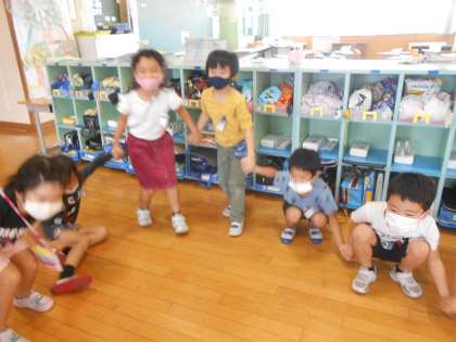 くじらぐもの3の場面の音読をみんなでしました。その場面のように動いてみました。ワークスペースでみんなで輪になって、「天までとどけ、1,2,3。」と言い、ジャンプをしていました。子供たちが文章をしっかりと読んでいることが分かり、嬉しく思いました。