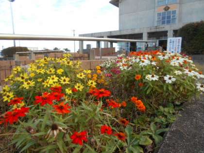 児童玄関前花壇のお花が暑い夏を乗り越えて、ずっと咲き続けています。今朝もきれいです。