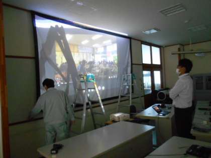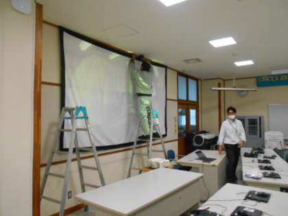 パソコン室の改造をしています。机の配置を全て変え、正面には巨大スクリーンを準備します。これで、さらに快適に情報教育を進めることができそうです。