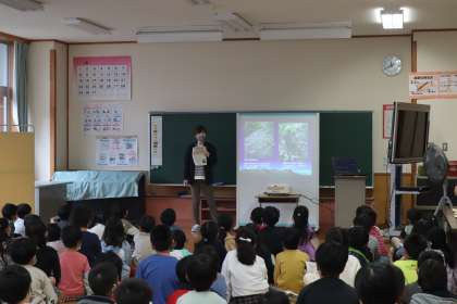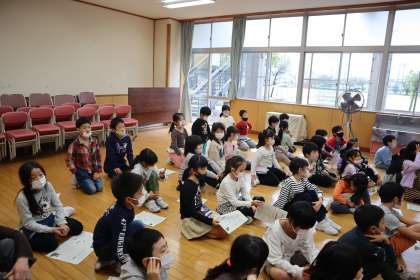 1,2年生合同で行われる来拝山登山について話を聞きました。楽しみになってきたようです。