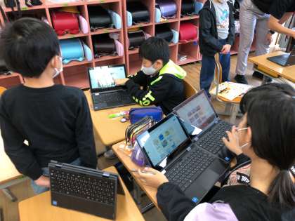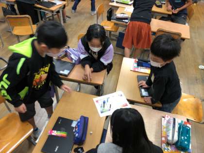 自分がつくったオリジナルタウンを使って道案内をしました。また、すごろくを楽しみながら、英語の表現に慣れ親しみました。
