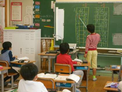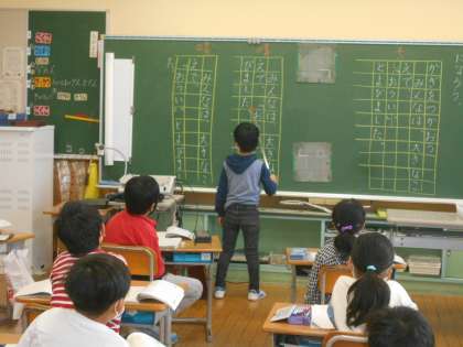 くじらぐもの学習後、かぎ「」の使い方を学びました。間違えた書き方と正しい書き方を比較し、注意するポイントを子供たちが伝え合いました。