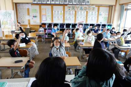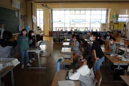 係活動でクロームブックを活用しながら表現する子供たちです。クロームブックがあると、表現の幅が広がり、楽しむことができますね。