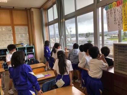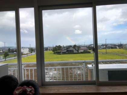 朝、きれいな虹が見られました。子供たちは大喜びでした。雨の日も悪くないですね。