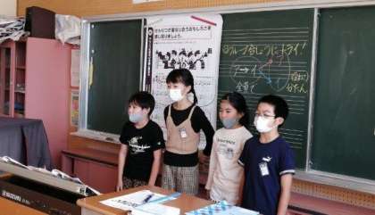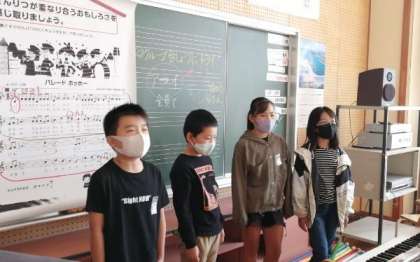 今日は、グループで二つに分かれて歌いました。重なりの部分では、自分のパートを歌うことに必死な子供たちでした。今後、友達の歌声を聴きながら、重なりを感じ取って歌うことができるようになるよう、学習を進めていきます。