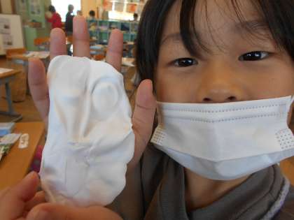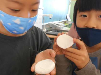 紙粘土を使って、いろんな物のでこぼこを写し取る活動をしました。カゴやはさみ、筆箱の模様等の写し、友達に伝え合いました。
