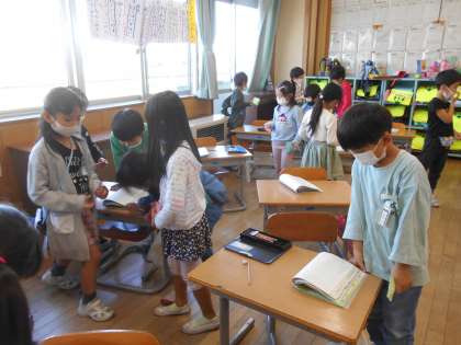 友達はどのように自学をしているのかを参考にするために、自学ノートの交流会をしました。自分とは違った学習方法が分かり、自分が見習いたいことを伝え合いました。