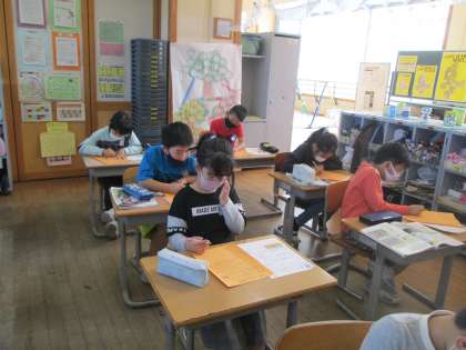 今回の不審者がきたときの避難訓練でした。「放送をしっかりと聞き、静かに待つ」ができたかな?終わったあとしっかりと振り返りをしました。