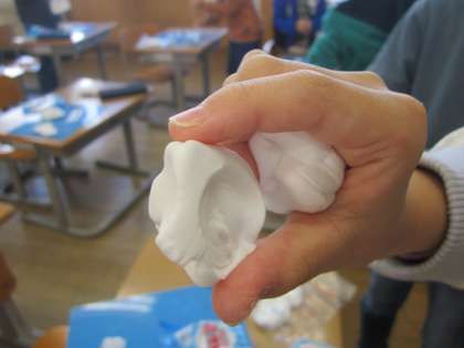 でこぼこを見つけて、紙粘土を押しつけると・・・紙粘土にでこぼこができました!子供たちはたくさんのでこぼこを見つけ、「こんな形になった!」「このでこぼこ、おもしろいよ!」と楽しそうに伝えてくれました。