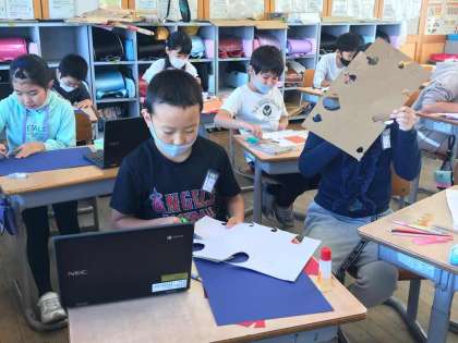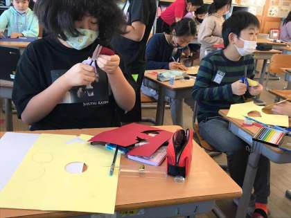 秋のものを画用紙で表しました。 思い思いの作品が仕上がりました。