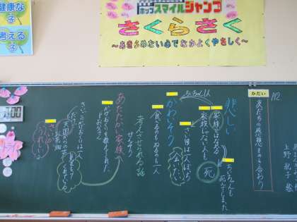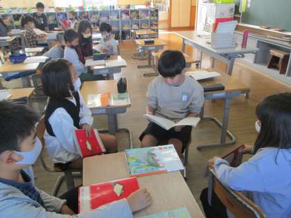 「ちいちゃんのかげおくり」というお話を読んで感想を伝え合いました。悲しいお話だという子もいれば、家族と再会できたから嬉しいお話だという子もいました。いろいろな意見が出て、一人ひとりの感じ方が違うことに気付かされた子供たちです。
