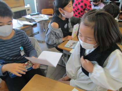 自分の思っている形を友達に伝え合いました。色と形はもう完璧な子供たちです。
